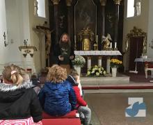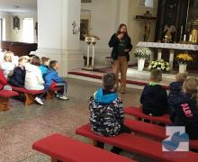 U kostela jsme nejprve prohlédli sochy v jeho okolí, o kterých nám vyprávěla paní katechetka. V kostele už na nás čekal pan farář, který nás seznámil s historií kostela a vzal nás i do míst, kam se běžně návštěvník kostela nedostane.