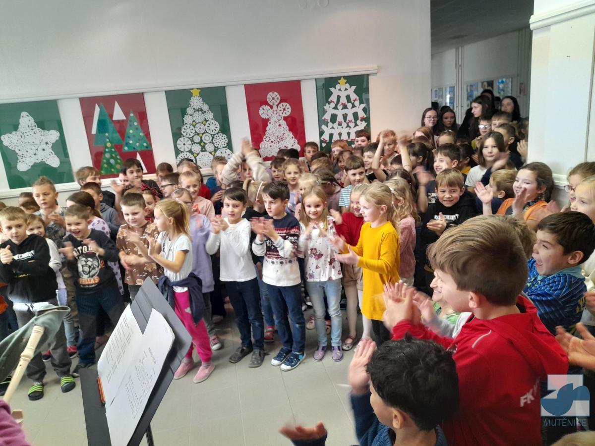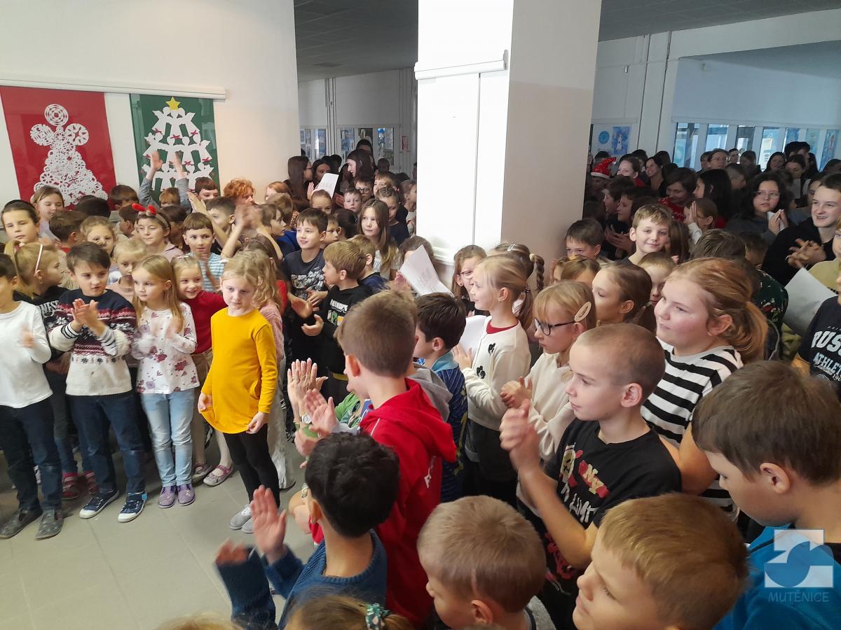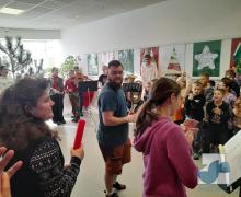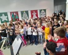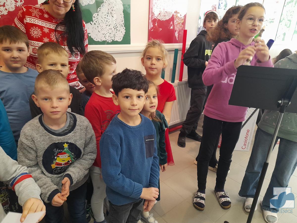 Ve čtvrtek 19. prosince se galerie naší školy rozezněla překrásnými tóny vánočních koled. Celá škola se sešla, aby společně přivítala nadcházející svátky. Atmosféra byla kouzelná – nechyběl stromeček plný ozdob a přátelský duch, který spojoval žáky, učitele i personál školy.
