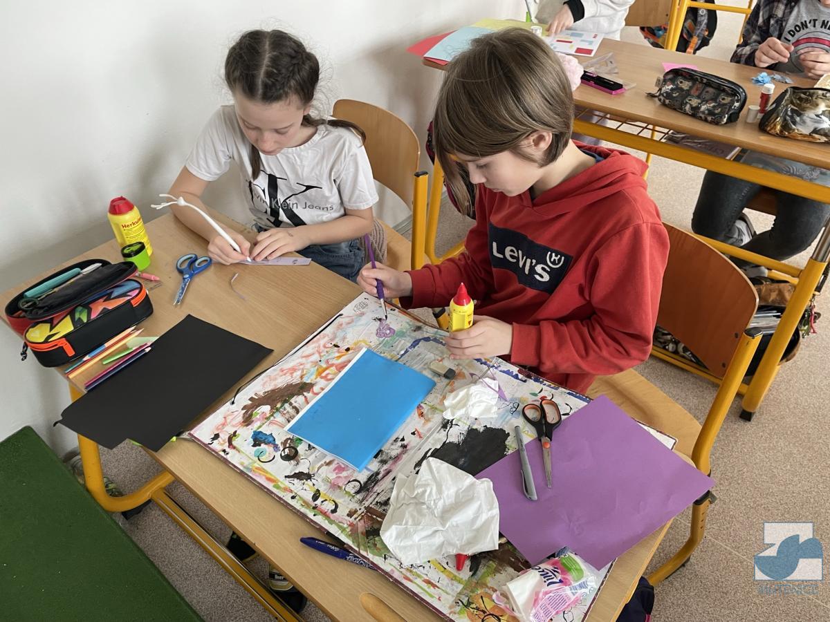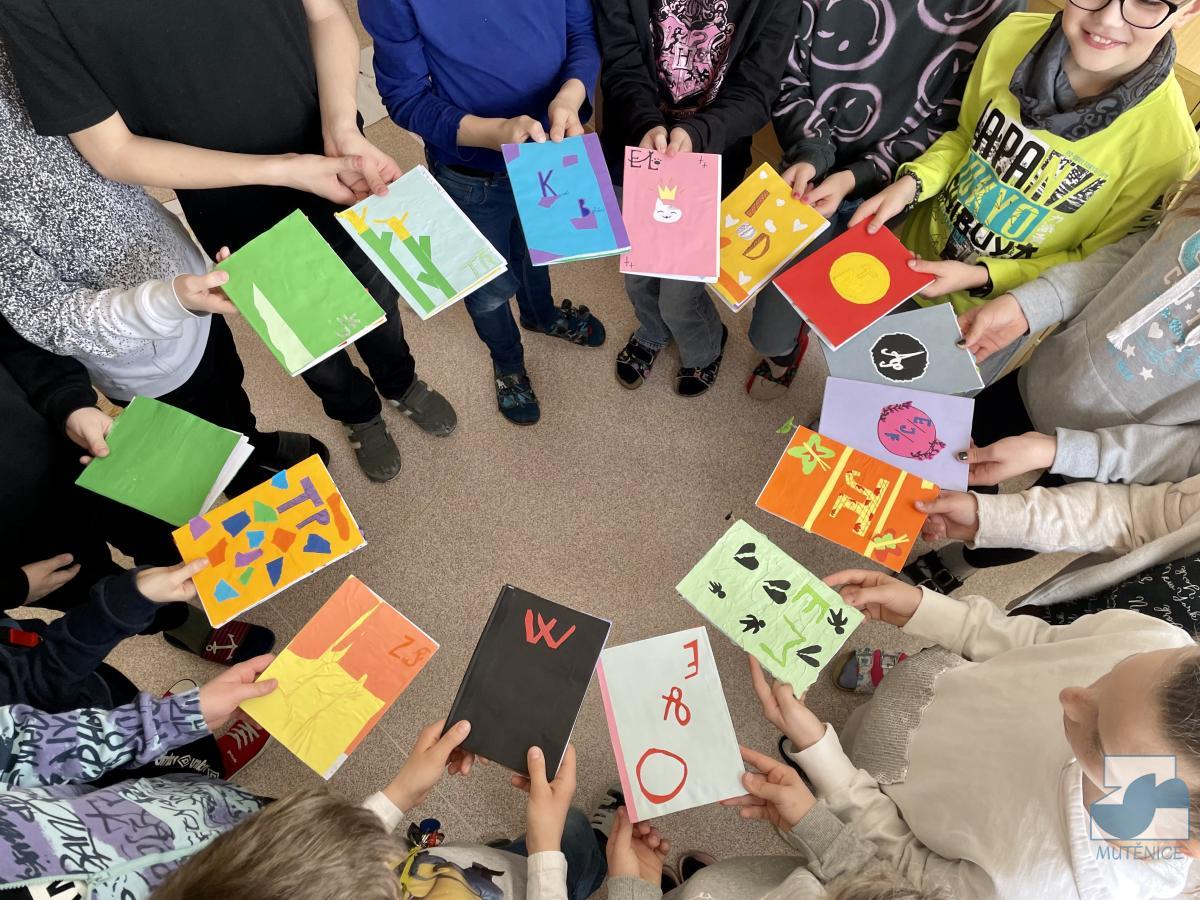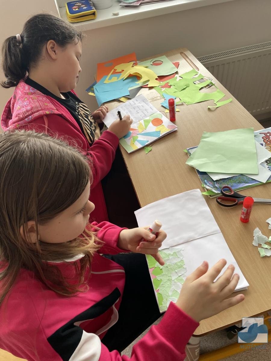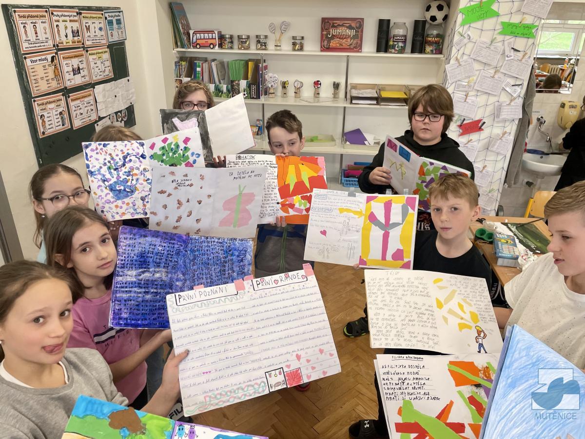 Tvoříme si vlastní knihu. Děti pátých tříd si vyráběly v hodině ČaP lepenou knihu, kterou si v hodinách výtvarné výchovy ilustrovaly kombinovanou technikou. Ve svém volnu ilustraci doplnily o text.