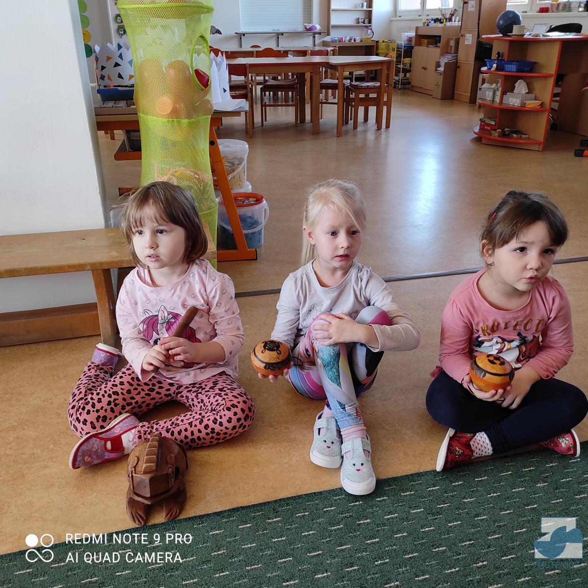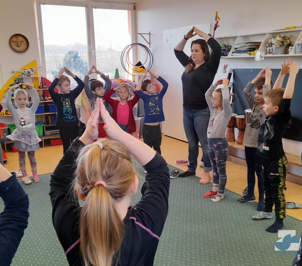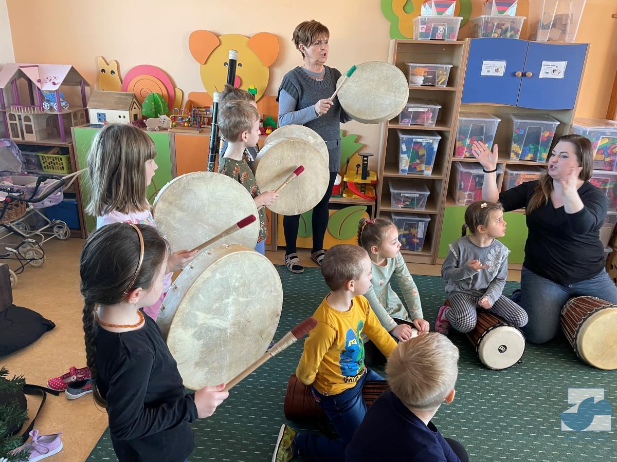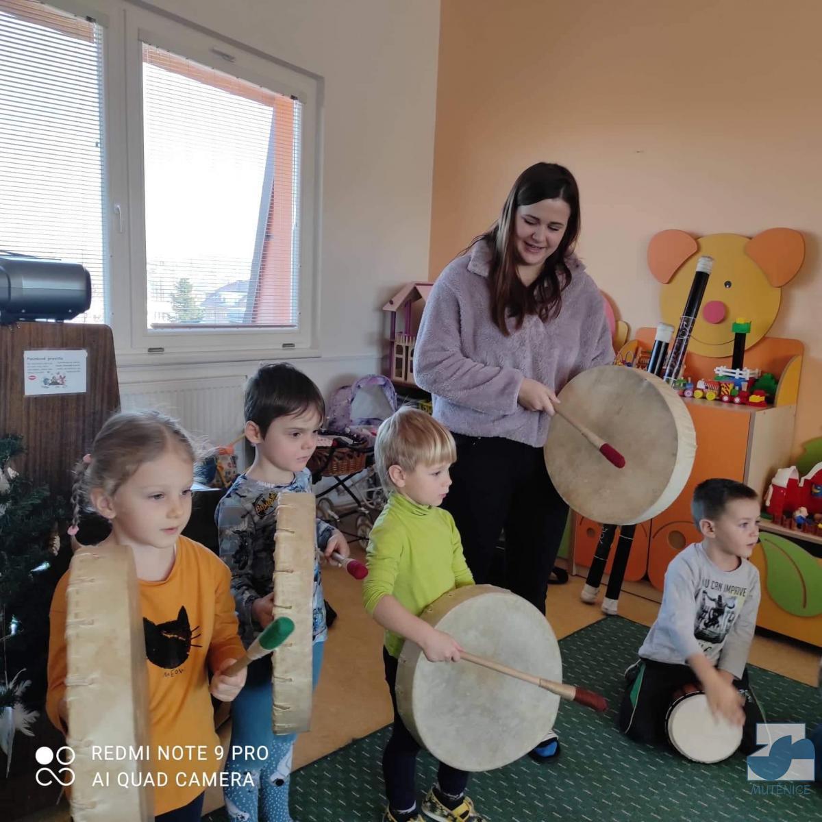 V pátek 7. 1. 2022 nás v mateřské škole navštívila Mgr. Alena Vlková a uvedla děti do skupinové muzikoterapie. Instrumentální hudební nástroje jako africké bubny Djembe, šamanské bubny, ozvučná dřívka, ozvučné žáby či dešťové hole navedly děti k přirozenému pohybovému projevu.