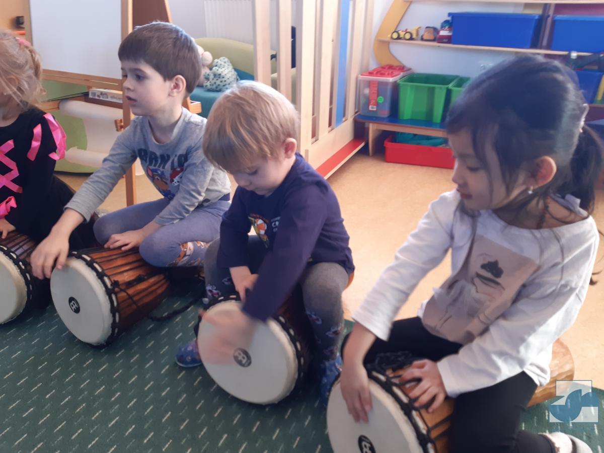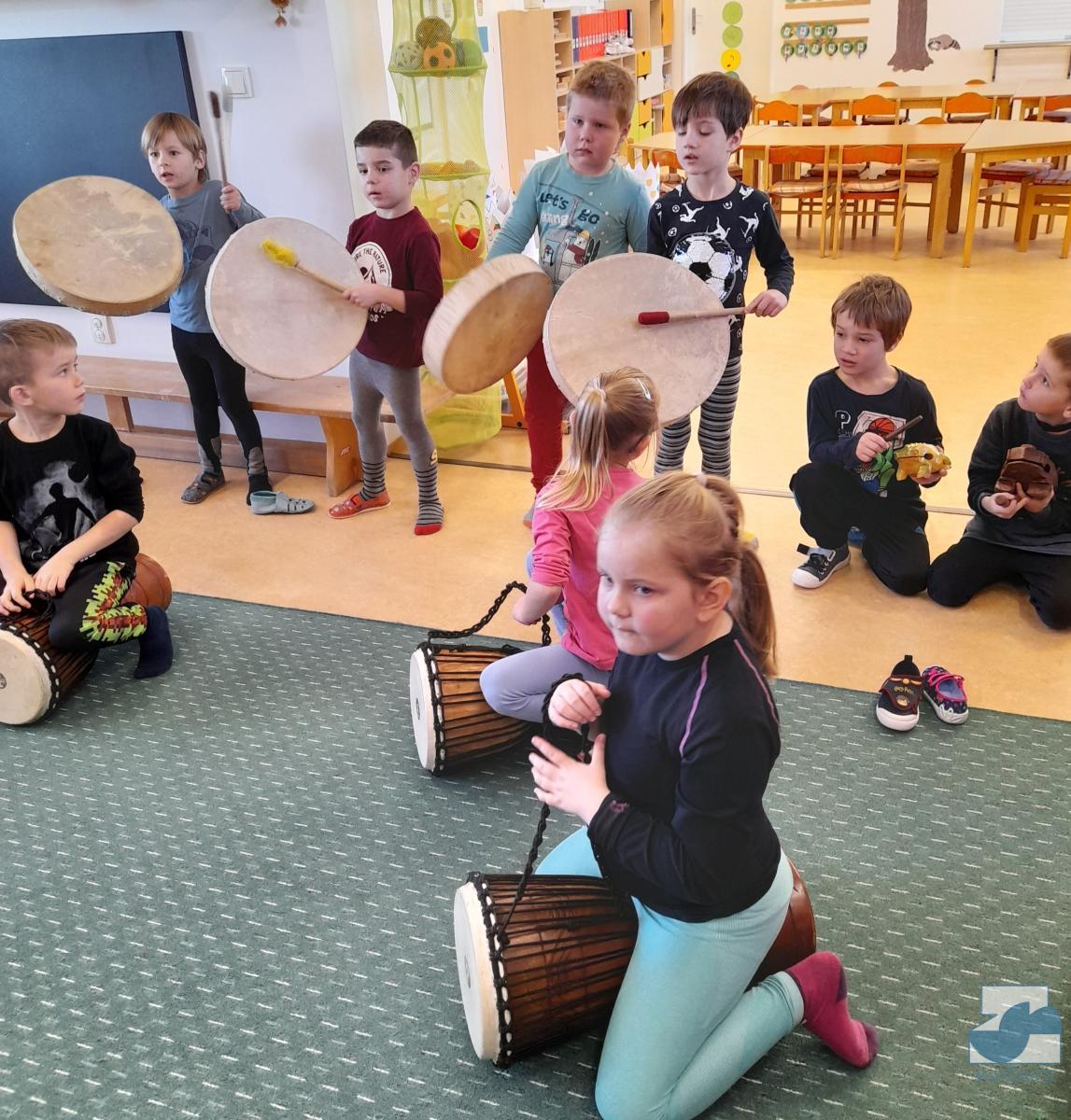 Hraní na nástrojích a vyťukávání rytmu podněcuje u dětí pohybovou tvořivost, prodlužuje a zlepšuje soustředěnost, koordinaci pohybů, hrubou a jemnou motoriku, harmonizuje obě hemisféry mozku a zlepšuje paměť. Lektorka vedla s dětmi řízený rozhovor, kde dětem vysvětlovala všechny techniky hry i pohybů, a to přiměřeně jejich věku.