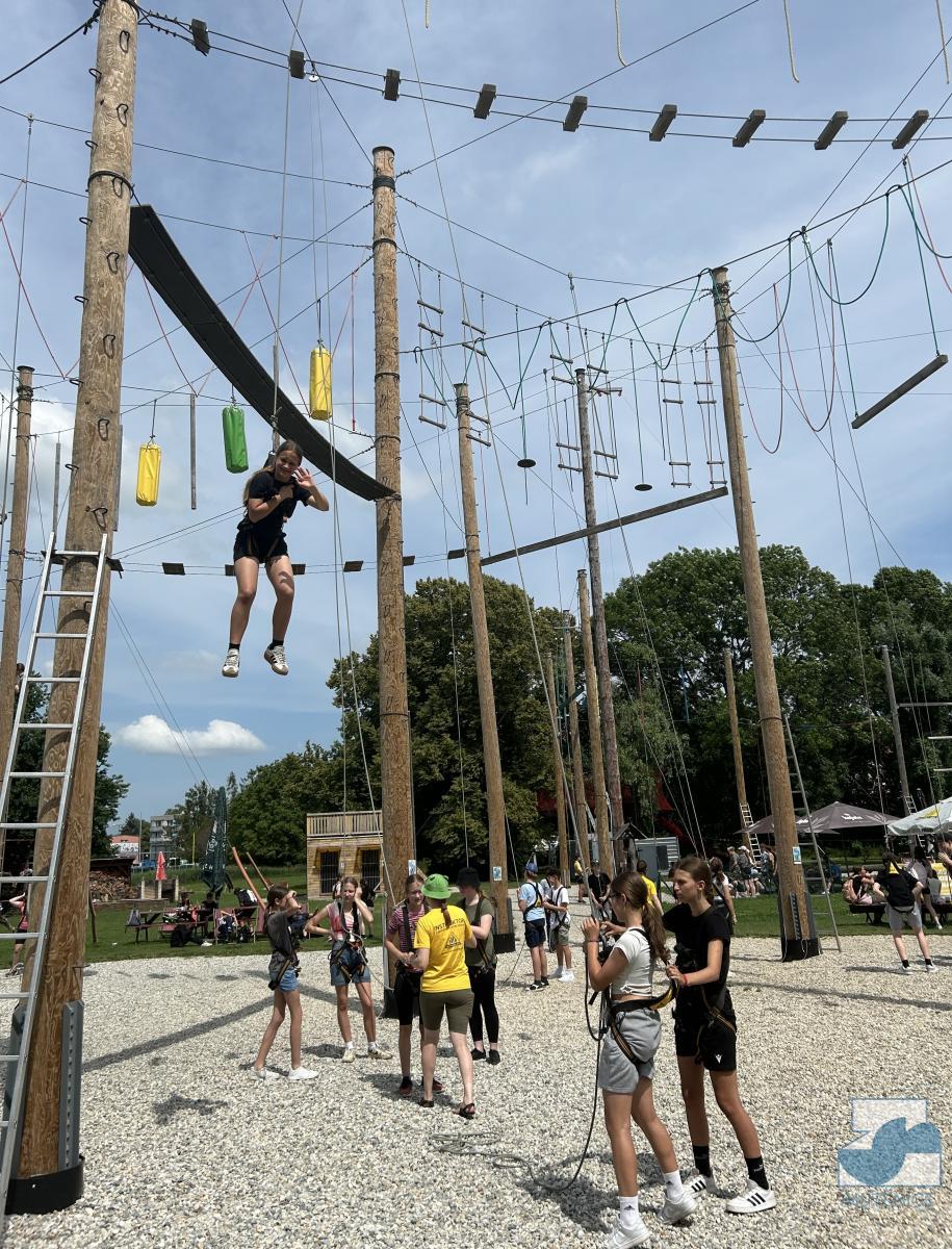 První den odstartoval pořádnou dávkou adrenalinu, v Laser game si žáci užili napínavou hru nejen mezi sebou, ale i s paní učitelkou, která se zapojila přímo do akce. Následovalo lanové centrum, kde si každý mohl vybrat podle svých sil a odvahy. Samozřejmě nesmělo chybět důkladné proškolení od lektorů. Začali jsme teambuildingovými aktivitami, při kterých se budovala důvěra a spolupráce ve dvojici, následovalo lezení po překážkách, kde musel lezec vložit svou důvěru do dvou spolužáků, kteří ho jistili na zemi. Ne vždy to bylo jednoduché, ale krok po kroku se žáci odhodlávali jít výš a výš. Za odměnu mohli ti nejodvážnější vyzkoušet i velkou houpačku, která prověřila nervy i odvahu.