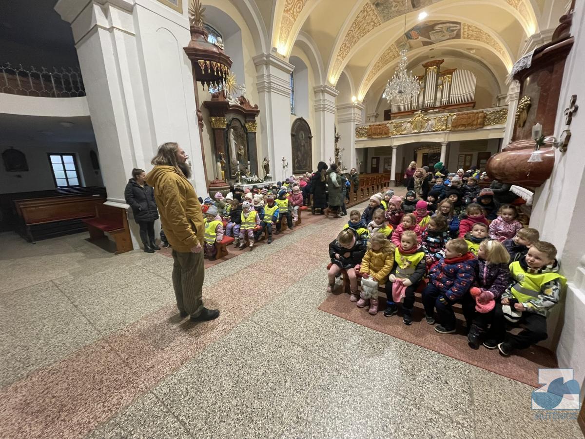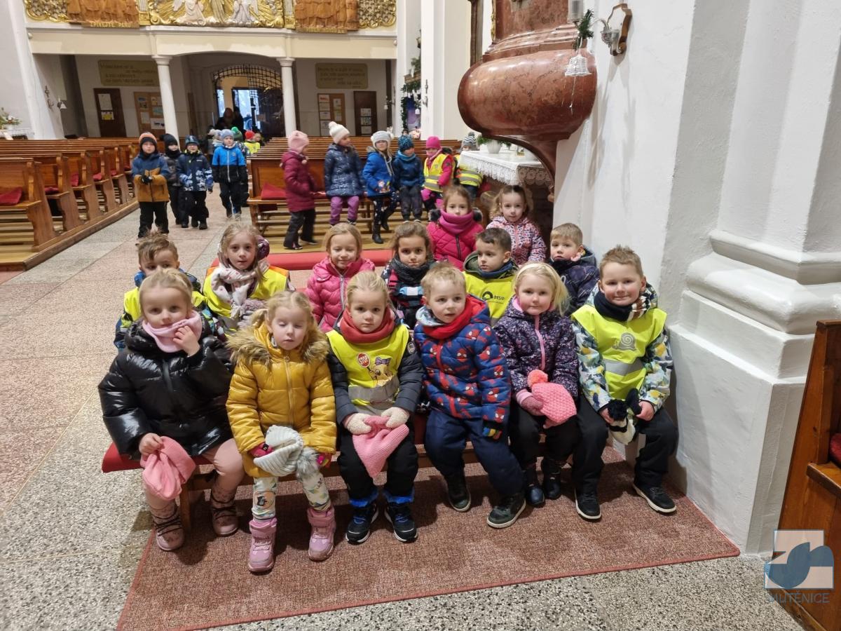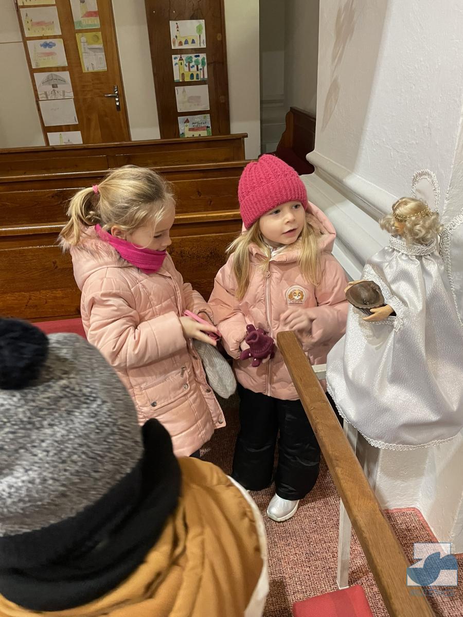 Dnes jsme s dětmi z celé mateřské školy navštívili místní kostel svaté Kateřiny, abychom si prohlédli betlém a vánoční výzdobu. Uvítal nás pan farář, který nám povyprávěl o historii kostela, něco o Jezulátku a ukázal nám sošku Panny Marie, jež v adventním čase putovala od domu k domu. Nakonec jsme zazpívali panu faráři i Ježíškovi vánoční písničku, předali přáníčko a vhodili mince do pokladniček anděla a černouška u betléma. Děti obdivovaly pohybující se postavičky v betlémě i kroje, které měly oblečené. Podívali se do sakristie a zazvonili na zvonečky u oltáře. Po krásném zážitku jsme se vydali zpět do školky. ✨