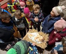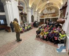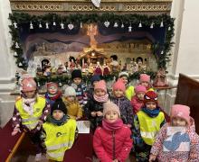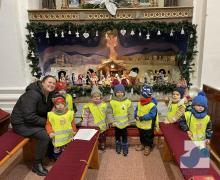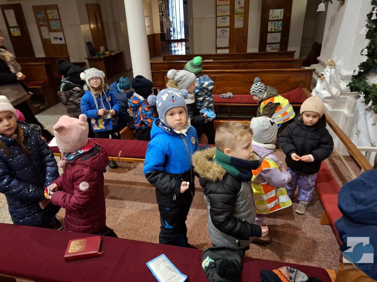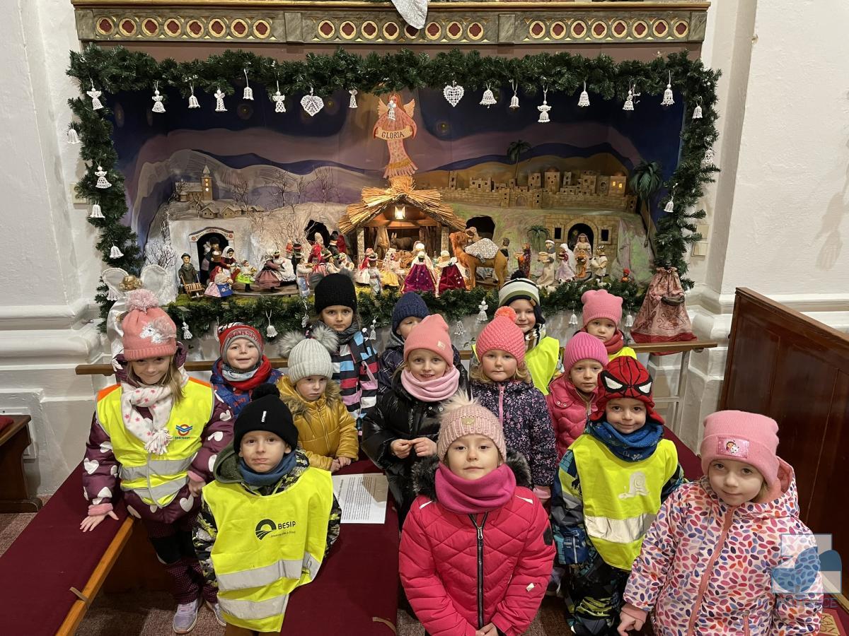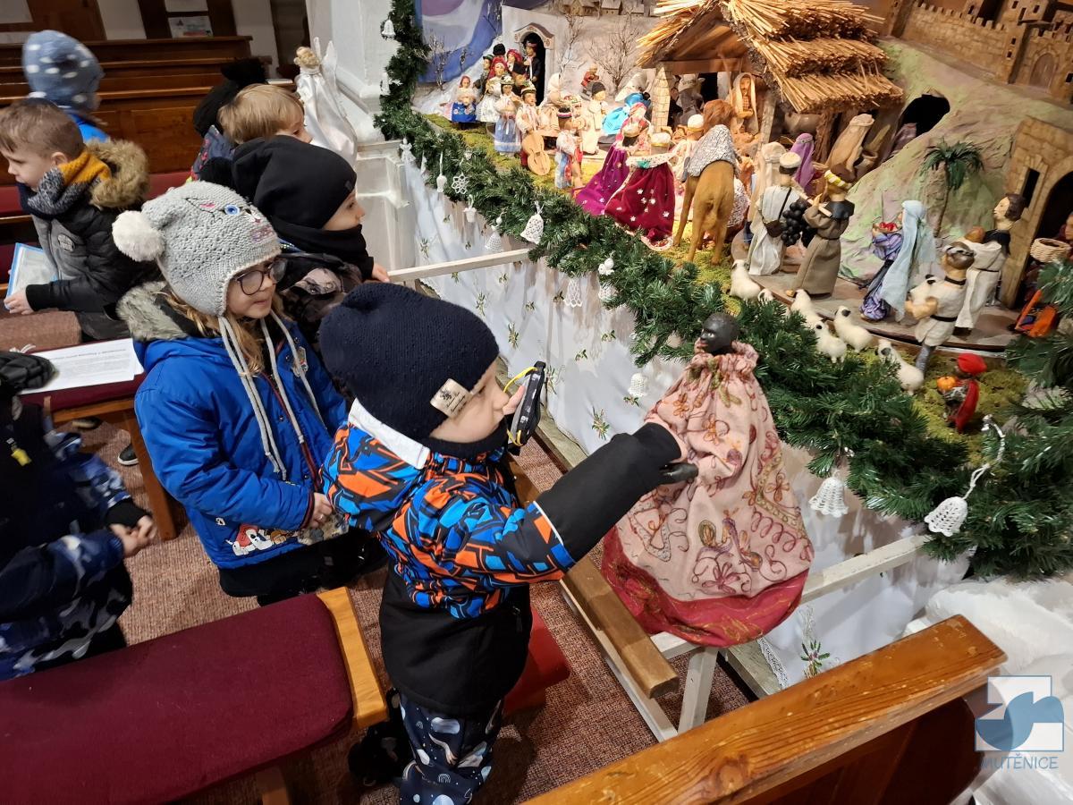 Dnes jsme s dětmi z celé mateřské školy navštívili místní kostel svaté Kateřiny, abychom si prohlédli betlém a vánoční výzdobu. Uvítal nás pan farář, který nám povyprávěl o historii kostela, něco o Jezulátku a ukázal nám sošku Panny Marie, jež v adventním čase putovala od domu k domu. Nakonec jsme zazpívali panu faráři i Ježíškovi vánoční písničku, předali přáníčko a vhodili mince do pokladniček anděla a černouška u betléma. Děti obdivovaly pohybující se postavičky v betlémě i kroje, které měly oblečené. Podívali se do sakristie a zazvonili na zvonečky u oltáře. Po krásném zážitku jsme se vydali zpět do školky. ✨