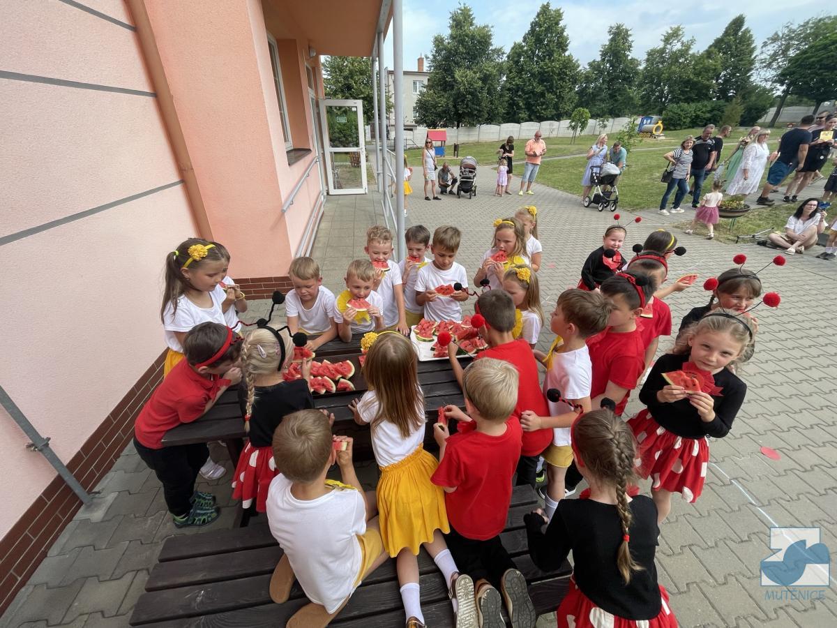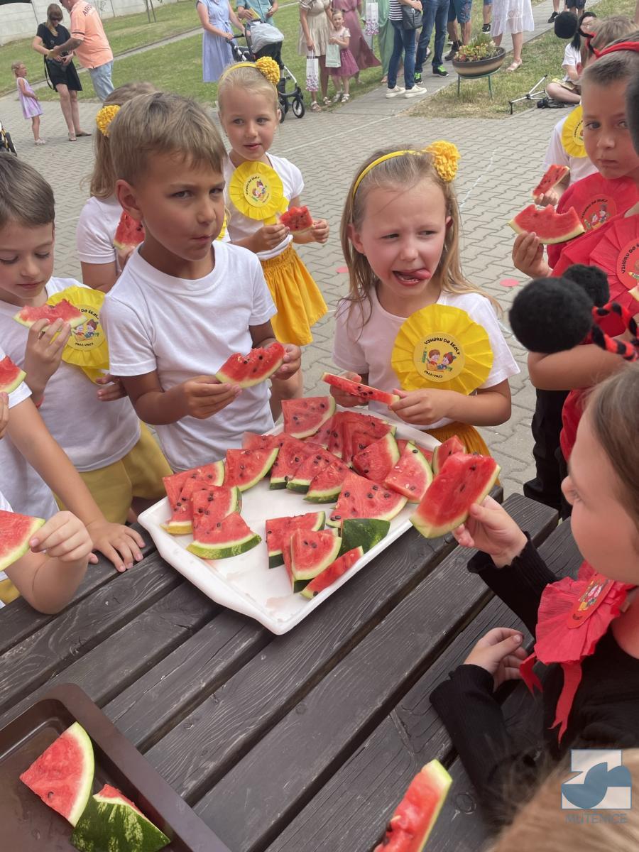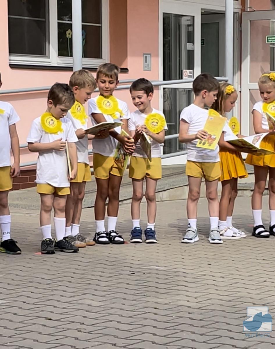 Vyrostli jsme, loučíme se, musíme dál do školy. Tato slova zazněla na slavnostním loučení s předškoláky. Program byl krásný a dojemný. Nám učitelkám se bude po dětech moc stýskat. Doufáme, že i ony si na nás někdy vzpomenou a přijdou nás do mateřské školy navštívit. Přejeme jim do života jen to nejlepší a škola ať je baví. Ahoj!