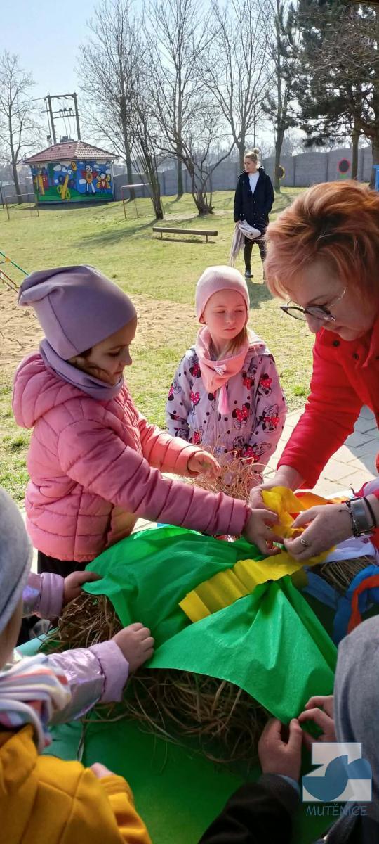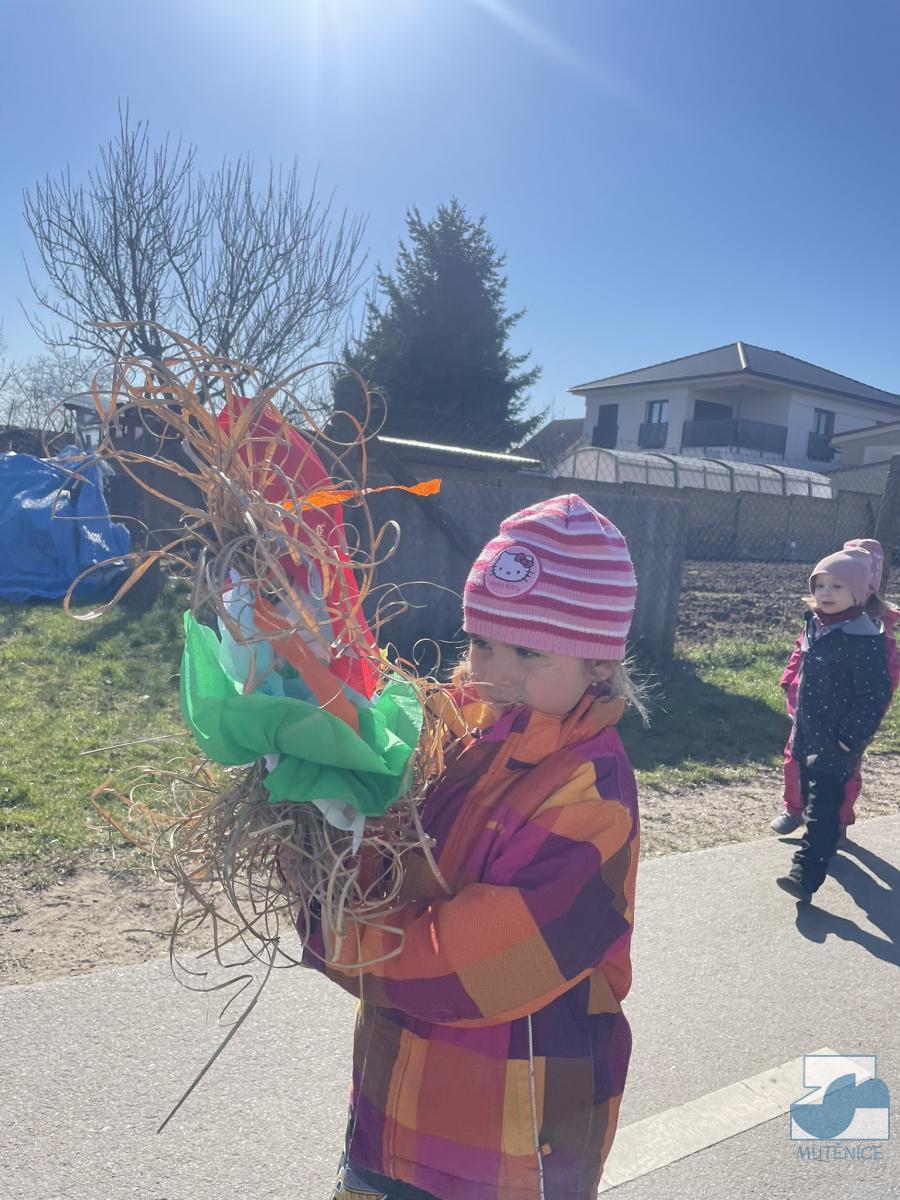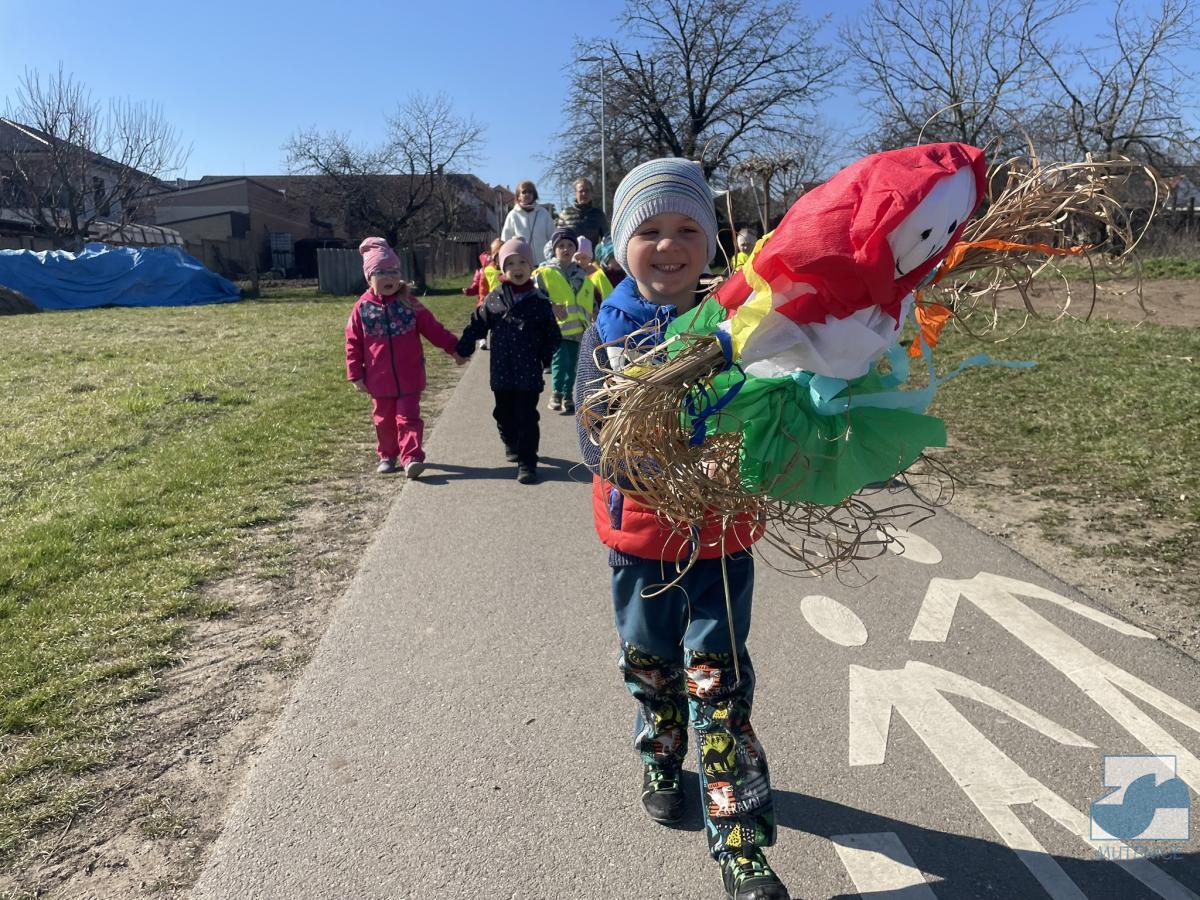 V naší mateřince dbáme na propojení všedních současných dní s dřívějšími zvyky a tradicemi. Tou první jarní tradicí bývá již každoroční vynášení Moreny a přinesení Létečka. Děti se nejdříve ve třídách seznamují s touto tradicí a učí se hudební říkadla k tomuto programu. Potom si společně s učitelkami vyrobily Morenu na školní zahradě a celá školka se vydala s říkadlem Neseme Morenu navrchu červenů, naspodu zelenů, pěknů, pěknů, pěkně vystrojenů k místnímu potoku. Zde si všichni zatančili kolem Moreny a už jsme házeli zapálenou Morenu do potoku. Nazpět jsme se vraceli s Létečkem (jarními větvičkami nazdobenými vajíčky) a písničkou Buďte tu babičky veselé... Tak a teď už jen, ať se můžeme radovat z jarních paprsků.