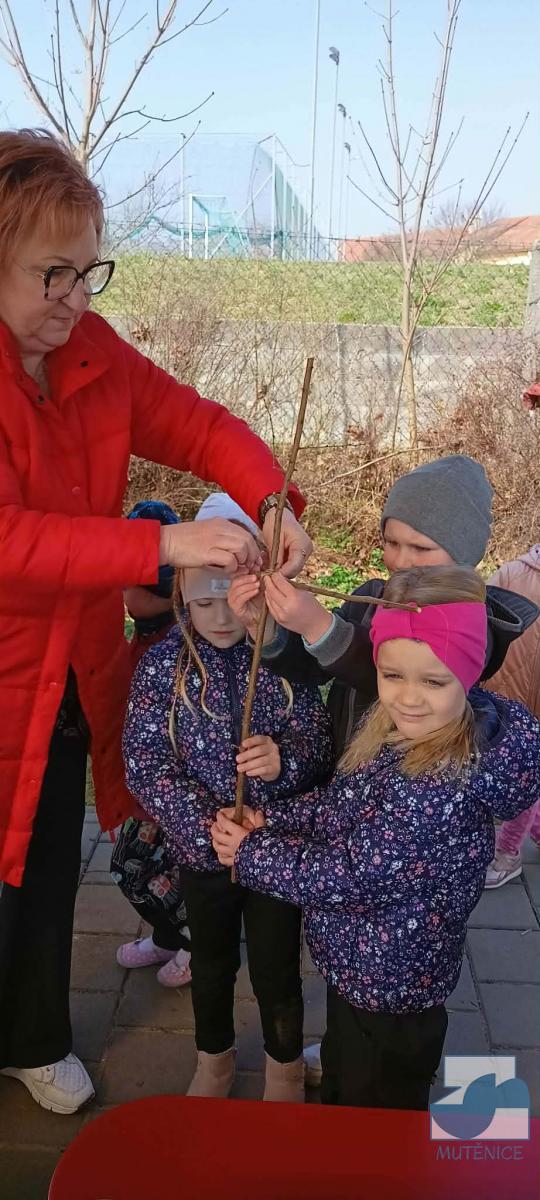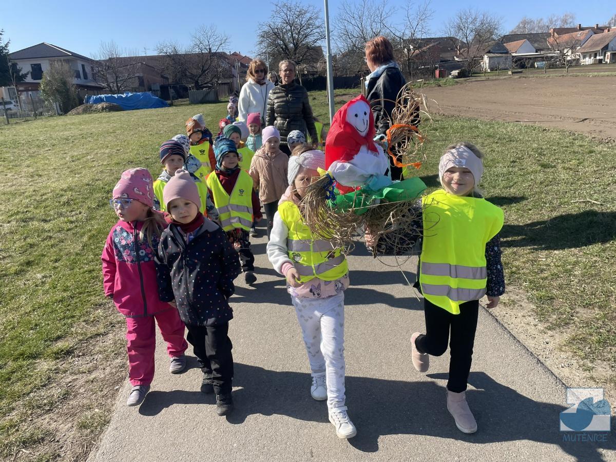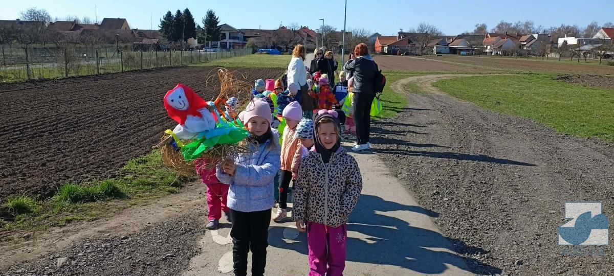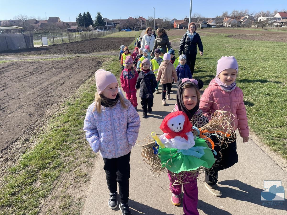 V naší mateřince dbáme na propojení všedních současných dní s dřívějšími zvyky a tradicemi. Tou první jarní tradicí bývá již každoroční vynášení Moreny a přinesení Létečka. Děti se nejdříve ve třídách seznamují s touto tradicí a učí se hudební říkadla k tomuto programu. Potom si společně s učitelkami vyrobily Morenu na školní zahradě a celá školka se vydala s říkadlem Neseme Morenu navrchu červenů, naspodu zelenů, pěknů, pěknů, pěkně vystrojenů k místnímu potoku. Zde si všichni zatančili kolem Moreny a už jsme házeli zapálenou Morenu do potoku. Nazpět jsme se vraceli s Létečkem (jarními větvičkami nazdobenými vajíčky) a písničkou Buďte tu babičky veselé... Tak a teď už jen, ať se můžeme radovat z jarních paprsků.