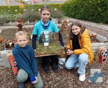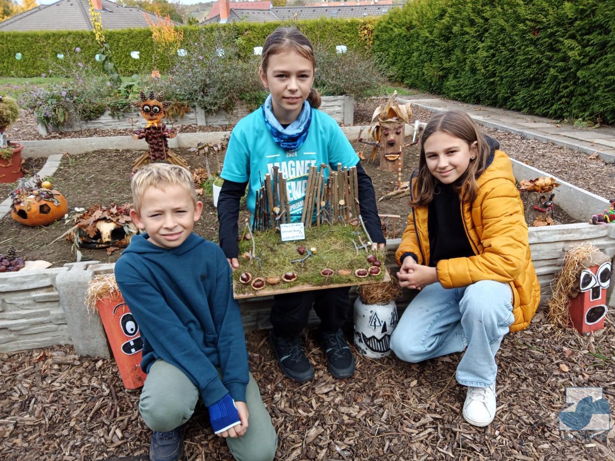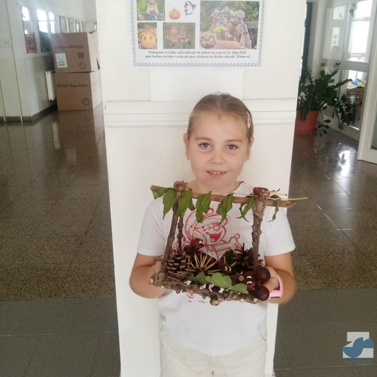 Děti během čtrnácti dní vytvořily samostatně nebo ve dvojicích, skupinkách v domácím prostředí výrobky, které přinesly do školy. Do tvoření zapojily svou fantazii a hlavně šikovné ruce. Těm menším možná pomáhali rodiče, větší už zvládly tvoření samy. Vznikly tak nádherné dekorace přírodnin ze šišek, žaludů, kaštanů, listů či mechu – zvířátka, strašidýlka, domečky, obrázky i celé přírodní krajinky. Výrobky byly vystaveny na naší školní zahradě a obdivovat je mohli všichni spolužáci, učitelé i rodiče, kolemjdoucí.