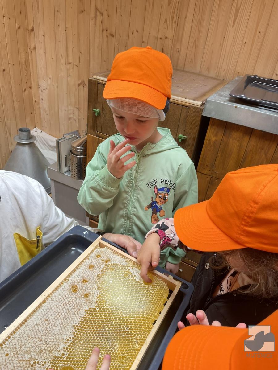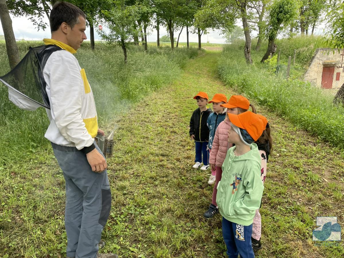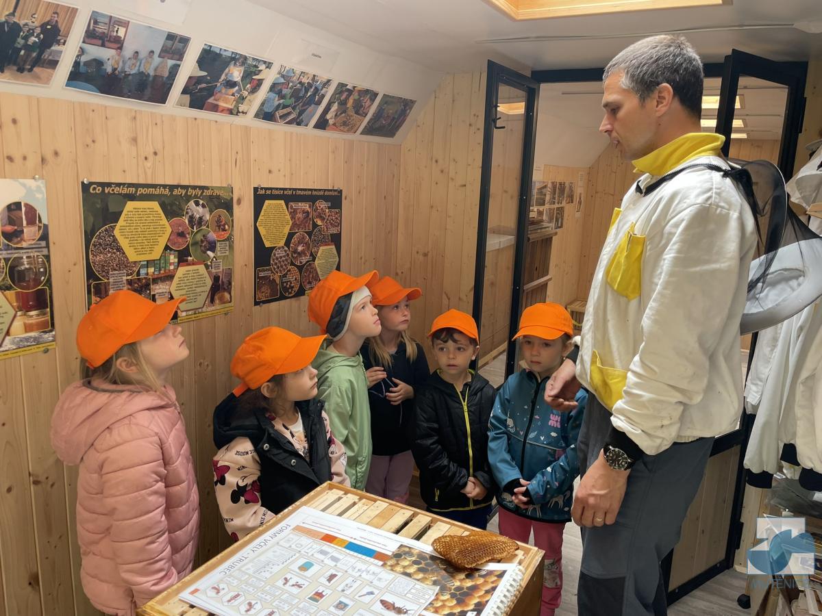 Navštívili jsme včelařský kroužek, kde jsme se zábavnou formou dozvěděli spoustu zajímavostí o životě včel. Děti si vyzkoušely sbírání „nektaru“ lžičkou, přenášení pylových zrnek do kyblíku, ochutnávku medu a pozorování včel v úlu. Pan Hudcovič nám ukázal královnu, trubce i dělnice, vysvětlil vývin včely od vajíčka až po dospělce a nechyběla ani ukázka dýmáku. Rozvíjeli jsme všechny smysly a poznávali včelky hravou formou prostřednictvím asociačních obrázků a zajímavého vyprávění.
